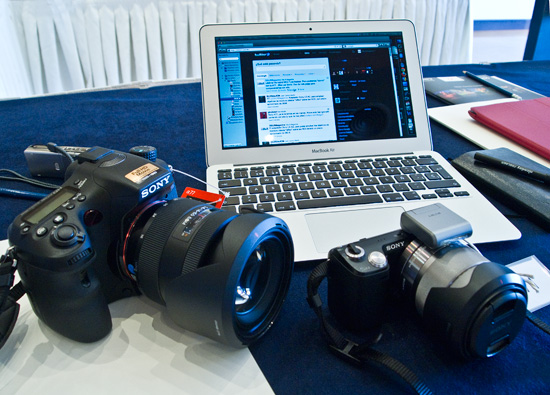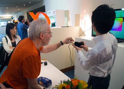 En nuestro caso, nos vamos a centrar en el modelo A77 más que en la A65 y en las NEX-5N y NEX-7, porque, ¡oh, gran desilusión!: no había disponibles más que tres unidades de NEX-7, y además, aunque “funcionaban”, no eran realmente operativas y estaban “encadenadas” a sus cuidadores. No es menos cierto que se nos ofreció –al grupo de Iberia– la opción de una suerte de sesión privada de toma de fotos "de la cámara" no con la cámara, pero por cuestión de horarios de vuelos pensamos que finalmente no se hizo... salvo sorpresas.