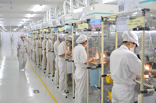 Ya que hablamos de áreas de trabajo, comentar que parecen extraordinariamente amplias, con un ambiente de trabajo aplicado, pero relajado en el trato, más que en Japón. La superficie de cada sección (moldeado en plástico, tallado, pulido, montaje, etc.) viene a ser de unos 1.800 m2, y en cada una de ellas trabajan unas 700 personas.
