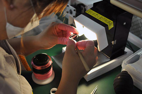 Como puede apreciarse a lo largo de la visita de la fábrica, la mayor parte del trabajo se realiza manualmente, lo que permite un alto control de calidad in situ, en cada fase de la producción, antes del control final, como vemos se está efectuando, incluso con un flash exrterno montado, en la imagen superior. Sin embargo, en algún caso podría llevar a hacernos pensar que puedan existir ciertas oscilaciones en el comportamiento óptico final de cada modelo, pero no hemos podido profundizar más en los 45 minutos que ha dado de si la visita de las cadenas de producción y montaje.