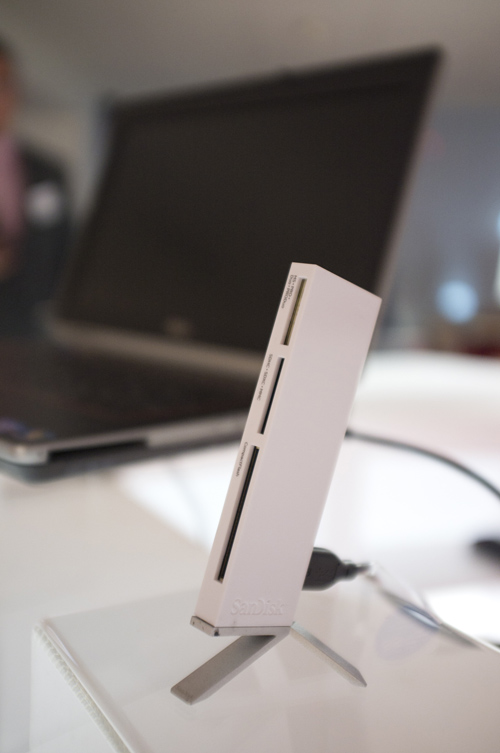 En animada charla con Christophe Rocca, siempre atento a nuestras consultas, le preguntamos acerca de la posible transferencia vía Thunderbolt en aras de aprovechar una ancho de banda aún mayor que el USB 3.0, especialmente recomendado para los cada día más numerosos usuarios de Apple. De idéntica manera que ocurría con las tarjetas Eye-Fi, nos contesta que será la propia demanda de los usuarios la que haga replantar a SanDisks esta nueva tipología de lector de gama alta... de momento no cuentan con ello, pero no cierran ninguna puerta.