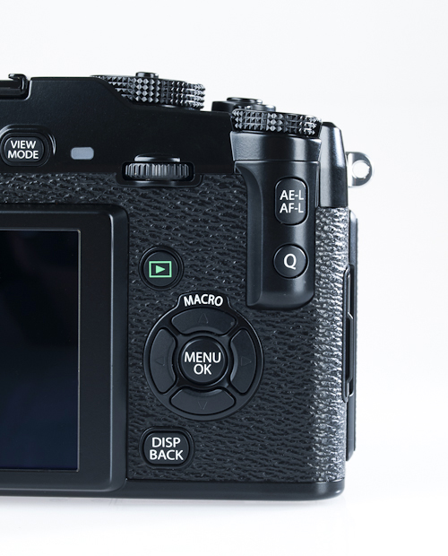 La parte trasera cuenta con una botonería no demasiado prolija, el usuario acostumbrado a miles de accesos físicos en cámara echará en falta muchos de ellos en la X-Pro1, ahora los que vayan más por un perfil Street Photography los que vengan de cámaras telemétricas y con cierta experiencia técnica, no echarán en falta nada, se adaptarán con total naturalidad al básico esquema de diales y aros físicos de control de diafragma, velocidad, compensación... menos es más, para muchos, en este terreno de cámara liviana de altas prestaciones.