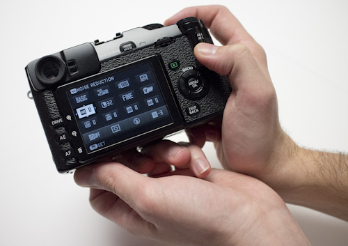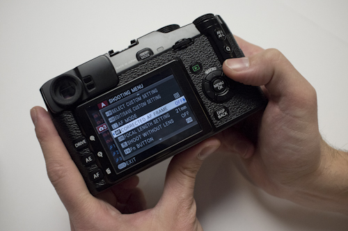 En lo que podríamos llamar el diseño interno, su OSD evoluciona adecuadamente respecto a los menús de la X100, compartiendo algunos de ellos e incluyendo un útil menú rápido, accionable con una sóla pulsación del nuevo botón "Q", desparece además el botón "RAW" algo anacrónico en tiempos de tarjetas de varias decenas de gigas y ordenadores de núcleos múltiples.
