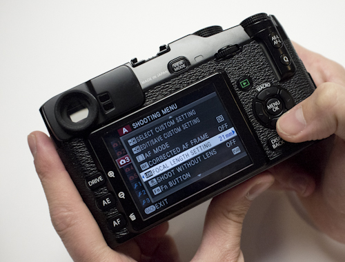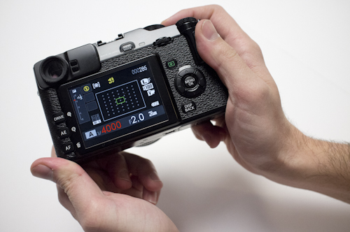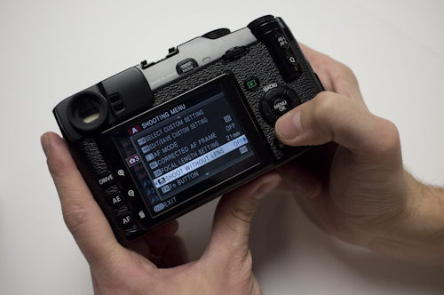 La posición de esta nueva tecla "Q" se ubica justo a nivel de pulgar con una acceso inmediato a la información fundamental de toma, un poco más arriba, igualmente mejor ubicado a nuestro jucio que en la X100, encontramos la tecla AF/AE lock, que bloquea como sabemos la exposición, el autofoco o ambas sin depender de la acción del disparador, siendo esta acción configurable.