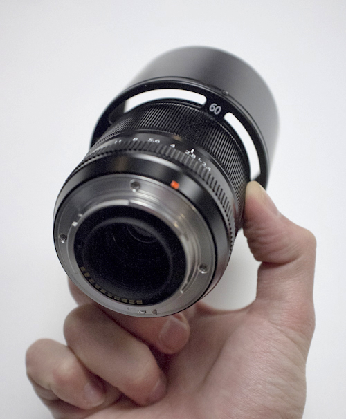 Buen acabado y robustez en todas las óptica, aquí Fujinon 60mm f/2,4 R...
