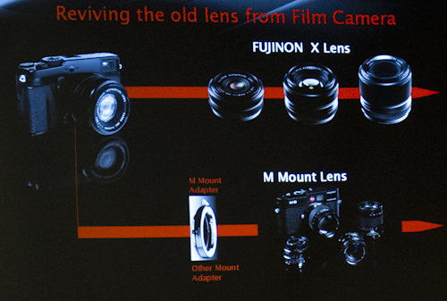 A las ópticas Fujinon oficiales, podemos además sumar, mediante adaptador, casi cualquier cosa, pero habrá que esperar a que se fabriquen los adaptadores pertinentes, teóricamente bajo una "flange distance tan corta" no parece existir apenas limitaciones de adaptación al respecto...