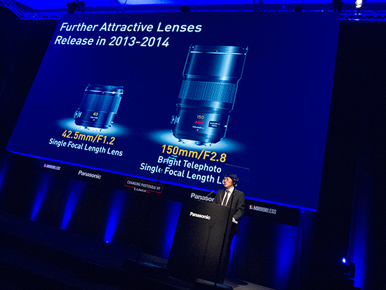A su vez, en la rueda de prensa Panasonic presenta otras nuevas ópticas de alta gama, que verán la luz a lo largo de 2013 y 2104, un 150 mm f/2,8 ( recordemos equivalente a un 300 mm f/2,8 para el paso universa)l y un increíble 42,5 mm f/1,2, que pasaría a ser una de las ópticas estándar para sistemas CSC más luminosas del mercado.