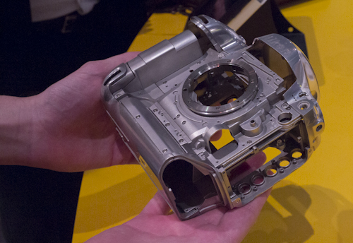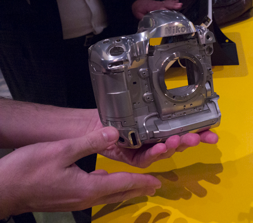 anunciabamos hace unos días el cuerpo es más ligero y la si bien este tipo de cámaras nunca han sido pequeñas y livianas, en parte por las necesidades paralelas al mundo del fotorreportaje, podemos decir por fin que la Nikon D4, aún en su formato "mastodóntico" tiene un equilibrio entre tamaño y peso mejor que las series anteriores, más de una luxación de muñeca sentirá positivamenete este cambio.