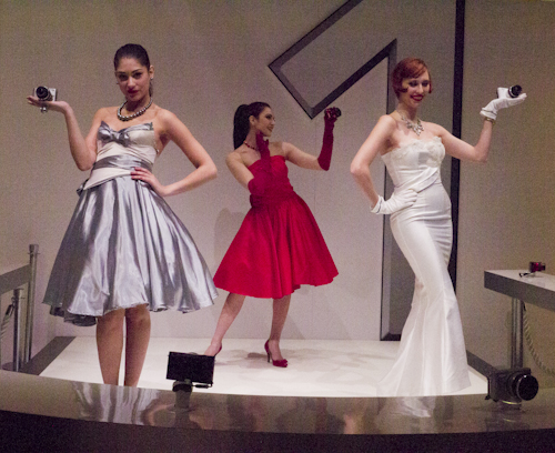 Como puede apreciarse, en el estand de Nikon se había prestado una atención muy especial, a las recientemente introducidas Nikon 1, la apuesta CSC de la firma. Además de zonas para "touch and try", perfectamente atendidas, así como actividades para que los interesados pudiesen probar las V1 y J1, interesantes expositores nos mostraban intrigantes alternativas de acabado. Ese gris "militar" nos recuerda a algunas Leica...