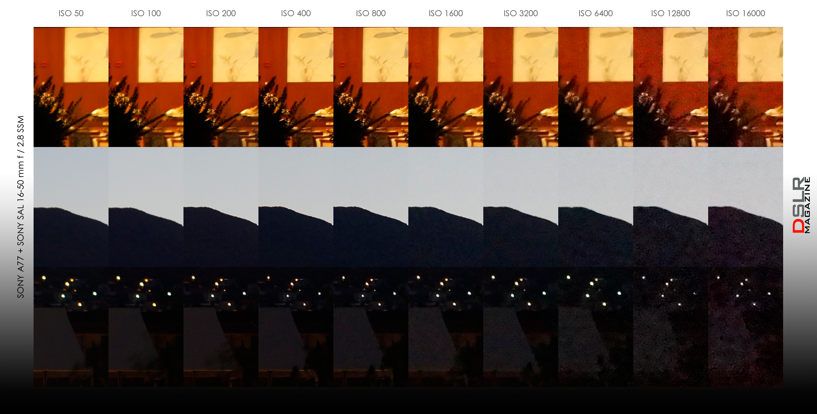 Si en la A77 el sensor EXMOR APS-C de 15,6 x 23,5 mm y 24,3 Mpx. ofrece una gama de 100 a 16.000 ISO, expandible a 50 ISO, para nosotros los valores de entre 3.200 ISO y 6.400 ISO serían el tope alto utilizable con calidad todavía relativamente “limpia”. Lo que no está nada mal, pero tal como venimos comentando últimamente tras pruebas de cámaras de Olympus, Panasonic y otras firmas, que los mismos que tuvieron el valor de rebajar la resolución de las compactas de alta gama de los 14 Mpx. a los 9 o 10 Mpx. comiencen a “anunciar” sensibilidades “reales” aceptables a la hora de hablar de ISO. Pero nos tememos que no ocurrirá.