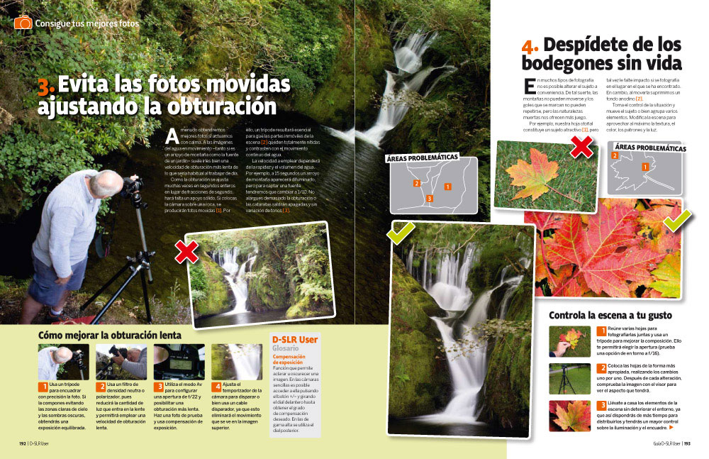 La Guía Completa D–SLR User es una atractiva Publicación en formato 23 x 28,97 cm y magníficamente impresa, lo que permite apreciar mejor los matices de los resultados de imágenes ofrecidos a lo largo de los más de 24 artículos en los que se desgranan las “200 formas de mejorar tu técnica fotográfica” que se prometen en la portada.