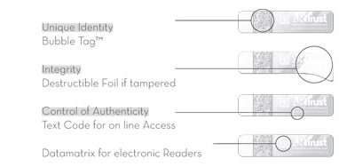 Así, cada etiqueta lleva la comentada Bubble Tag o “etiqueta de burbujas” y es que incluye una serie de burbujas de polímero generadas aleatoriamente, y esas burbujas van asociadas a la información encriptada de la matriz. El sistema de adhesión de las etiquetas hace que se autodestruyan si se intenta despegarlas o manipularlas de manera alguna.