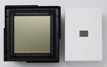 El nuevo captor a la izquierda, comparado en tamaño con un "full frame" a su derecha.