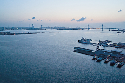 misma, pero desde la vista de la bahía de Yokohama al amanecer o al