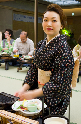 Larga cena típica, atendida con gracia y amabilidad orientales