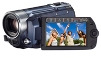 tres colores diferentes.La FS100 graba directamente en tarjeta de memoria y según su fabricante, posee múltiples características muy fáciles de usar, tales como un objetivo zoom 45x, y que en su conjunto hacen que baste con “apuntar y grabar”. Si se desea registrar un sonido perfecto en un momento importante, la nueva FS100 dispone de entrada para micrófono.