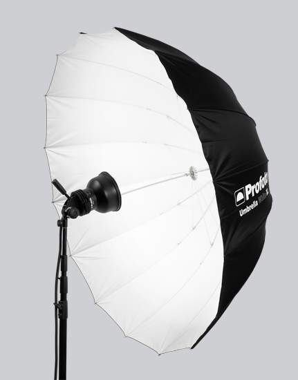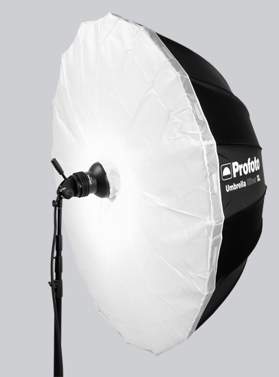La nueva "Profoto Umbrella XL" tiene un diámetro de 165 cm. Está disponible en blanco, plata y acabado translúcido, siendo compatible con todas las antorchas y autónomos Profoto. También puede montarse en el Profoto Cine Reflector y, por lo tanto, es compatible con toda la nueva línea de luz continua: ProDaylight 800 Air y ProTungsten Air.