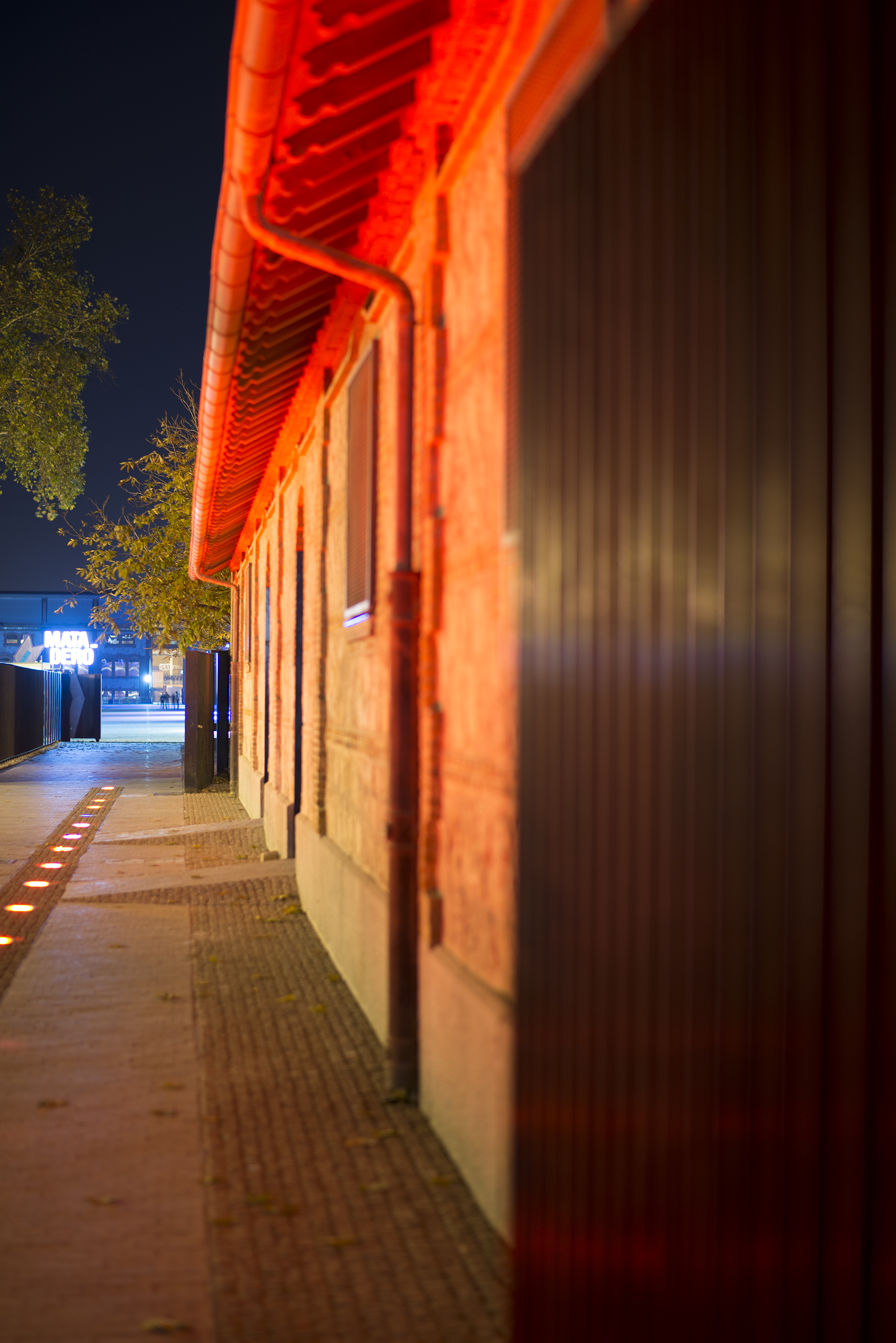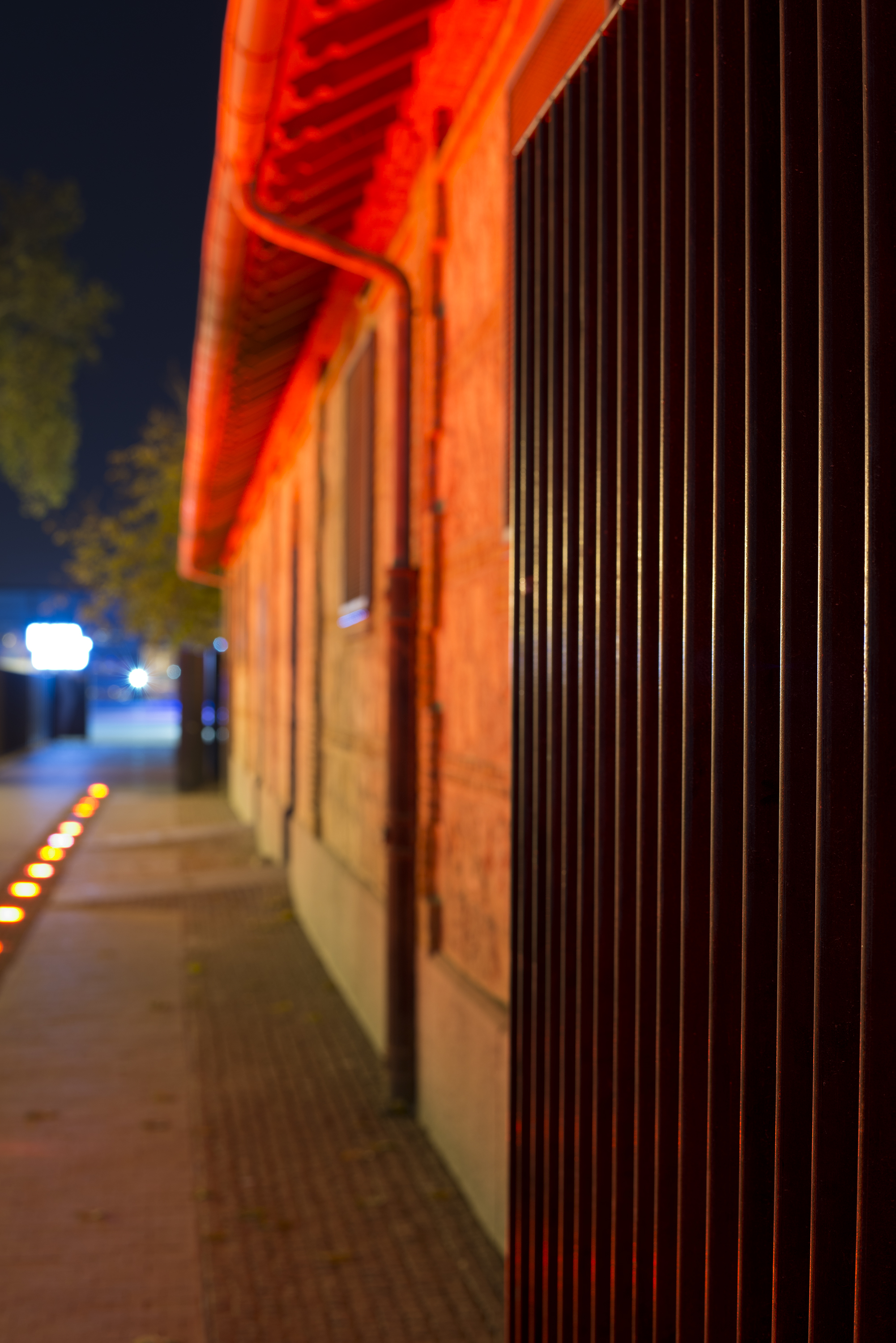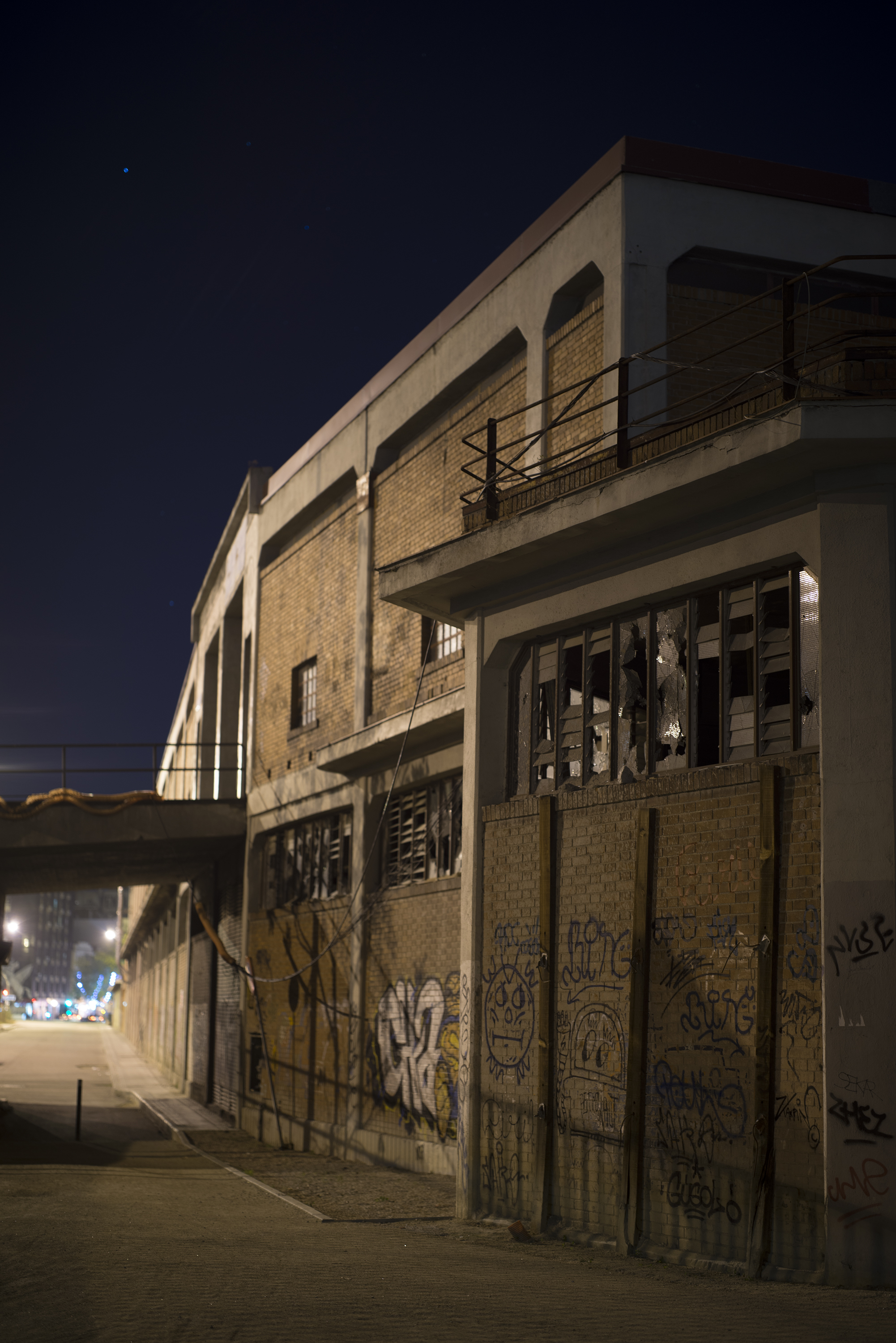 Para la segunda toma, una vieja nave industrial nos permite no solo comparar el desenfoque desde el primer plano hasta el fondo, sino el comportamiento de los puntos luminosos y la forma en la son rerpresentados. En este caso, el foco está puesto sobre los vidrios rotos más próximo a nosotros.