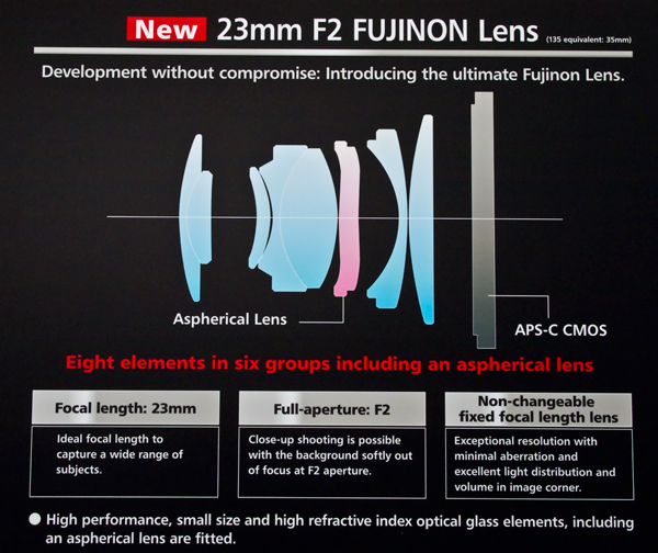 Diseño óptico en muy especial retrofoco invertido, con una lente aesférica, de la Fujifilm X-100
